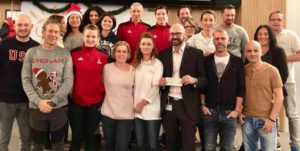 Nous avons eu la joie de recevoir des mains du directeur de l’établissement, Monsieur Alessandro CRESTA, entouré d’une partie de son équipe, un magnifique chèque de 2 360 euros, correspondant à l’euro reversé sur chaque salade niçoise servie sur la plage de l’hôtel, la « Z Plage »